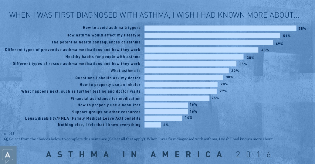 Respondents would have liked to have known more about avoiding asthma triggers, as well as the condition’s impact on their lifestyle at the time of their diagnosis.