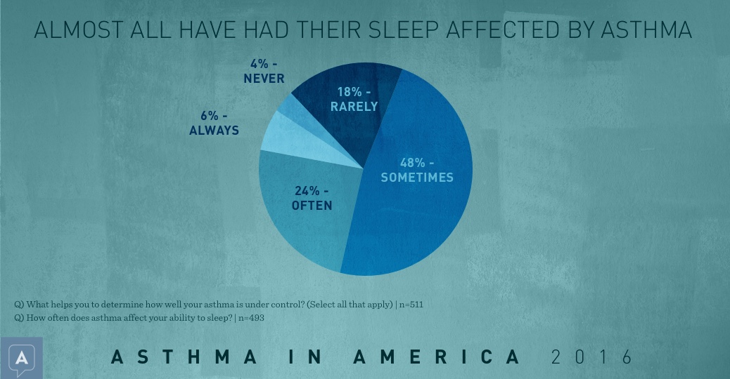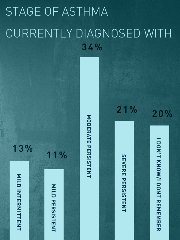 Asthma has had the most negative impact on respondents’ ability to exercise or participate in physical activities. It is not surprising that 96% said their overall quality of life is negatively impacted to some extent by asthma.
