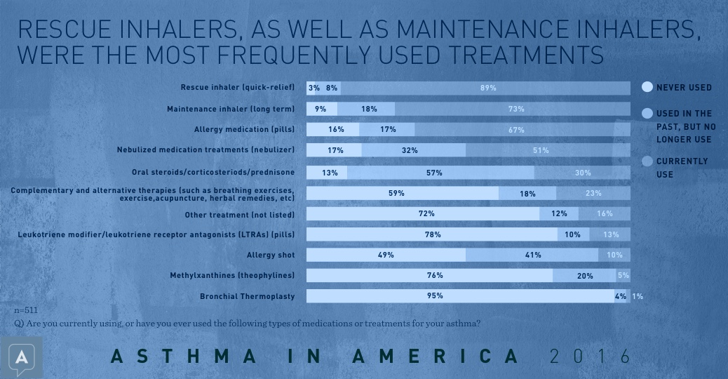 68% of respondents were currently using both rescue and maintenance inhalers.