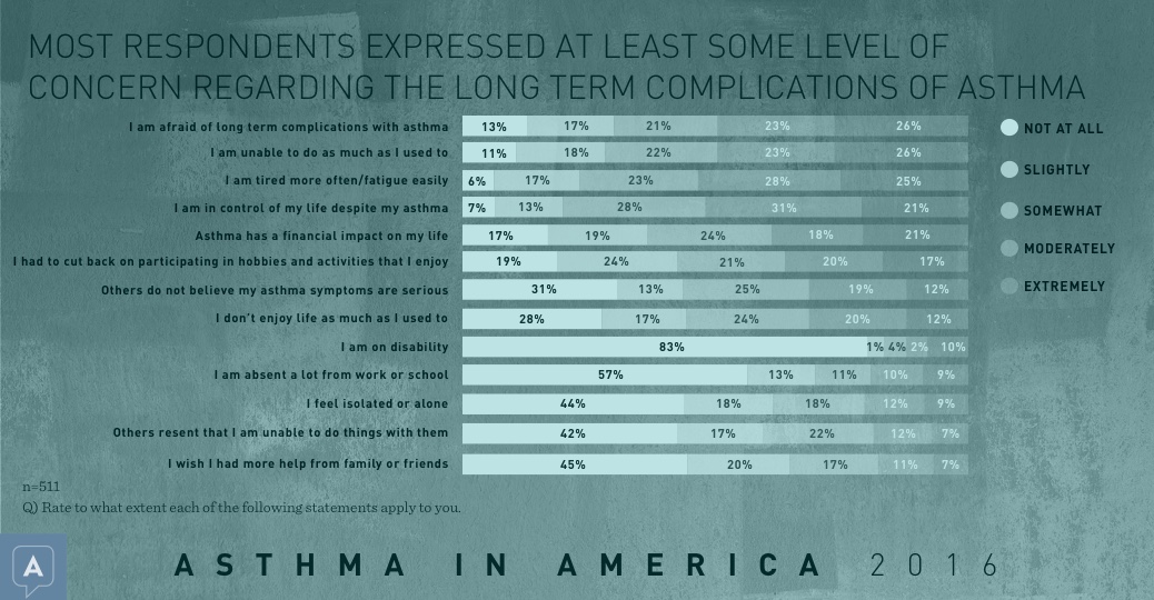 Respondents indicated they are unable to do as much as they used to, as well as fatiguing easily and fearing the long-term complications of asthma