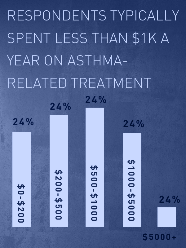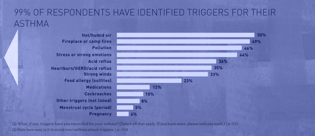 Comorbidities: Asthma is just part of the overall health burden for these individuals. 99% of respondents had other health conditions besides asthma, particularly anxiety, and pancreatitis.