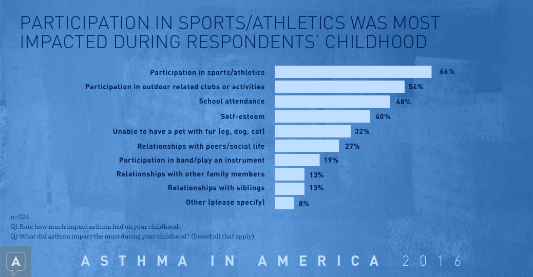 Of those who suffered from asthma during their childhood, the condition had some, moderate, or extreme impact on 87% of these individuals