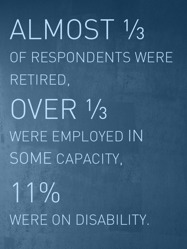 More than ½ of respondents were from households with an income that is less than $75K per year. 44% had group insurance coverage and 36% had Medicare/Medicaid.